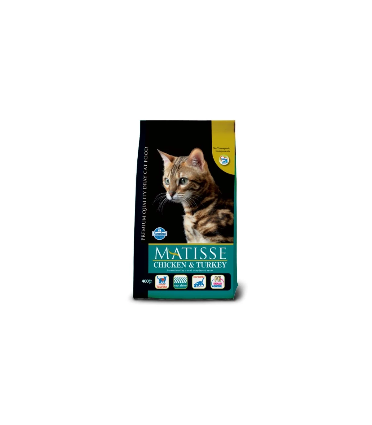 Carne di pollo e tacchino disidratata (32%), riso (25%), mais, pesce disidratato, grasso di pollo, proteine animali idrolizzate, polpa di barbabietola essiccata, carote essiccate (2%), spinaci in polvere (2%), barbabietola rossa in polvere (2%), olio di pesce, olio vegetale, glutine di mais, uova intere disidratate, cloruro di sodio, cloruro di potassio, solfato di calcio biidrato, lievito di birra essiccato.