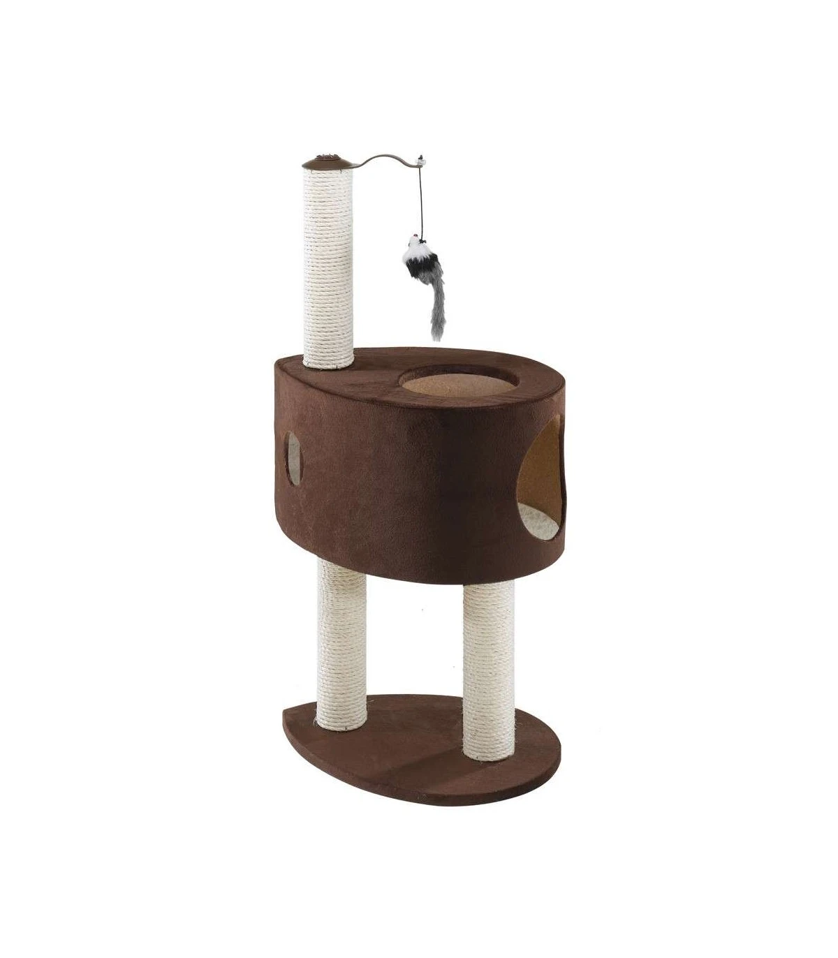 Sarà divertente vedere il vostro gatto mentre gioca con il topolino in peluche e sbuca fuori dalla sua tana a forma di foglia! PA 4019 è una palestra-gioco per gatti completa di tutto il necessario per far divertire il vostro allegro amico a quattro zampe: tre colonne in sisal, due per sostenere la casetta e una sul tetto di questa, saranno utilizzate dal vostro micio per farsi le unghie spensieratamente, mentre i tre fori di apertura della cuccia gli consentiranno un’ampia visibilità sul suo territorio. Il pendente a forma di topino, invece, sarà un ottimo diversivo nei momenti di noia. Alto complessivamente 88 cm, a parte le colonne, è rivestito interamente in peluche sintetico, costituendo un confortevole rifugio per il vostro animale: il tiragraffi perfetto per giocare e riposare, lasciando in pace i mobili!