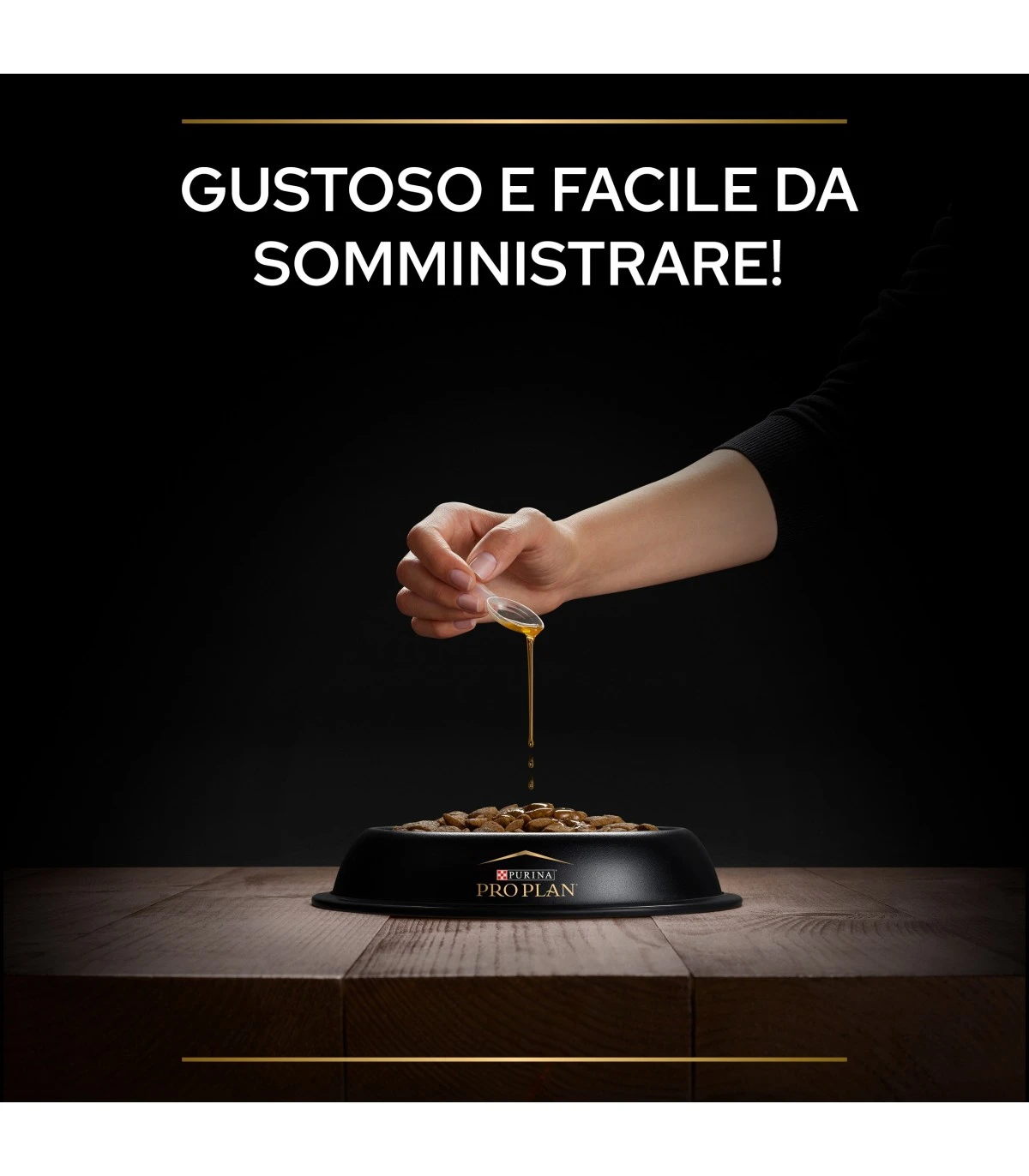 Pro Plan Supplements Skin & Coat + è un alimento complementare per cani adulti di tutte le taglie che nutre la pelle e il pelo del tuo cane in modo completo perché contiene nutrienti essenziali come gli acidi grassi Omega-3 e Omega-6 provenienti da salmone Norvegese, olio di semi di lino e vitamina E.